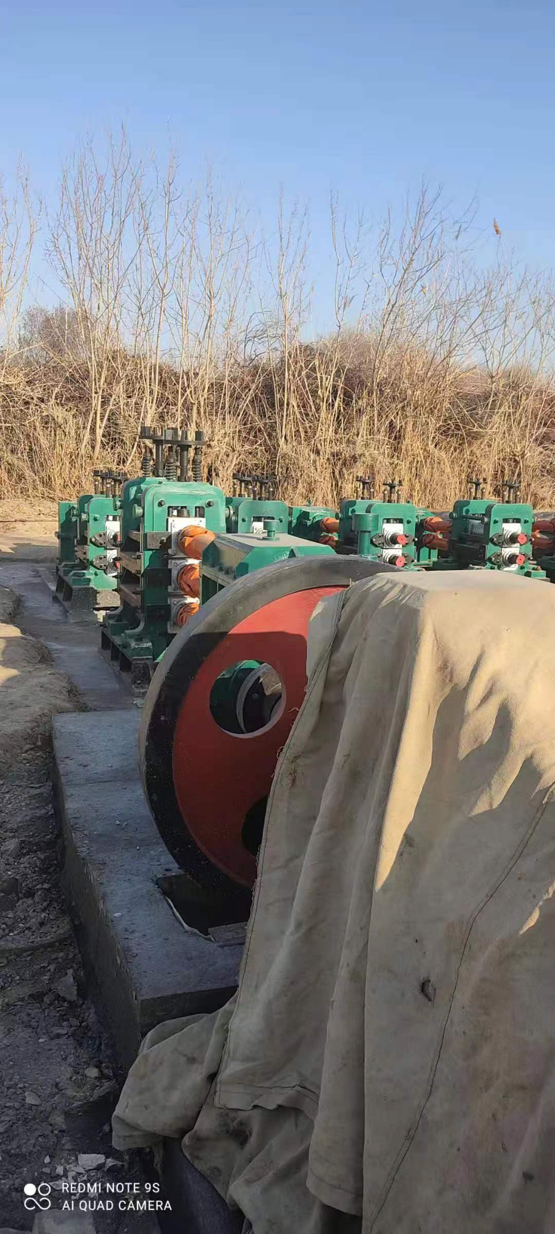 序號 名稱 數量 1 φ250三(sān)輥軋機;中心距250mm;輥麵長(zhǎng)度600mm 1 2 主電機;P=145KW;直流電機 1 3 飛(fēi)輪組;飛輪φ1500mm 1 4 三輥軋機減速機 ZD50 1 5 三軸齒輪機座;A=250MM 1 6 萬向節SWC250 3 7 聯軸器 1 8 φ220軋機電機(jī);P=55KW 7 9 φ220二輥軋機;中心距220mm;輥麵長度450mm 7 10 連軋機聯合減速機ZD30 7 11 萬向節 14 12 成品輸送輥道 長度14M 1 13 冷床(chuáng) 長度20米 1 客戶現(xiàn)場安裝照片